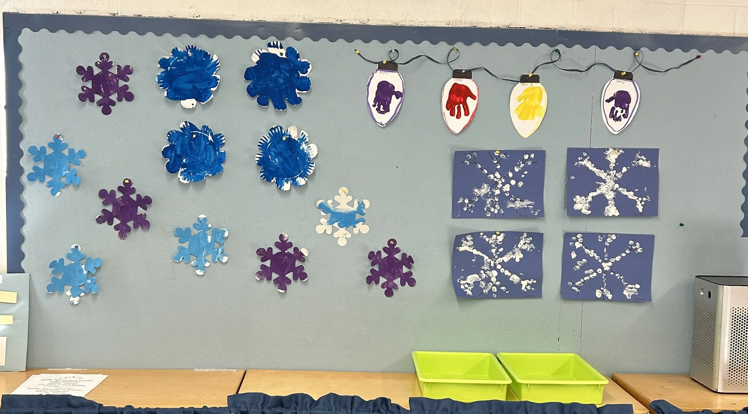 The children painted snowflakes at the easel and made our own holiday lights using the children’s handprints!