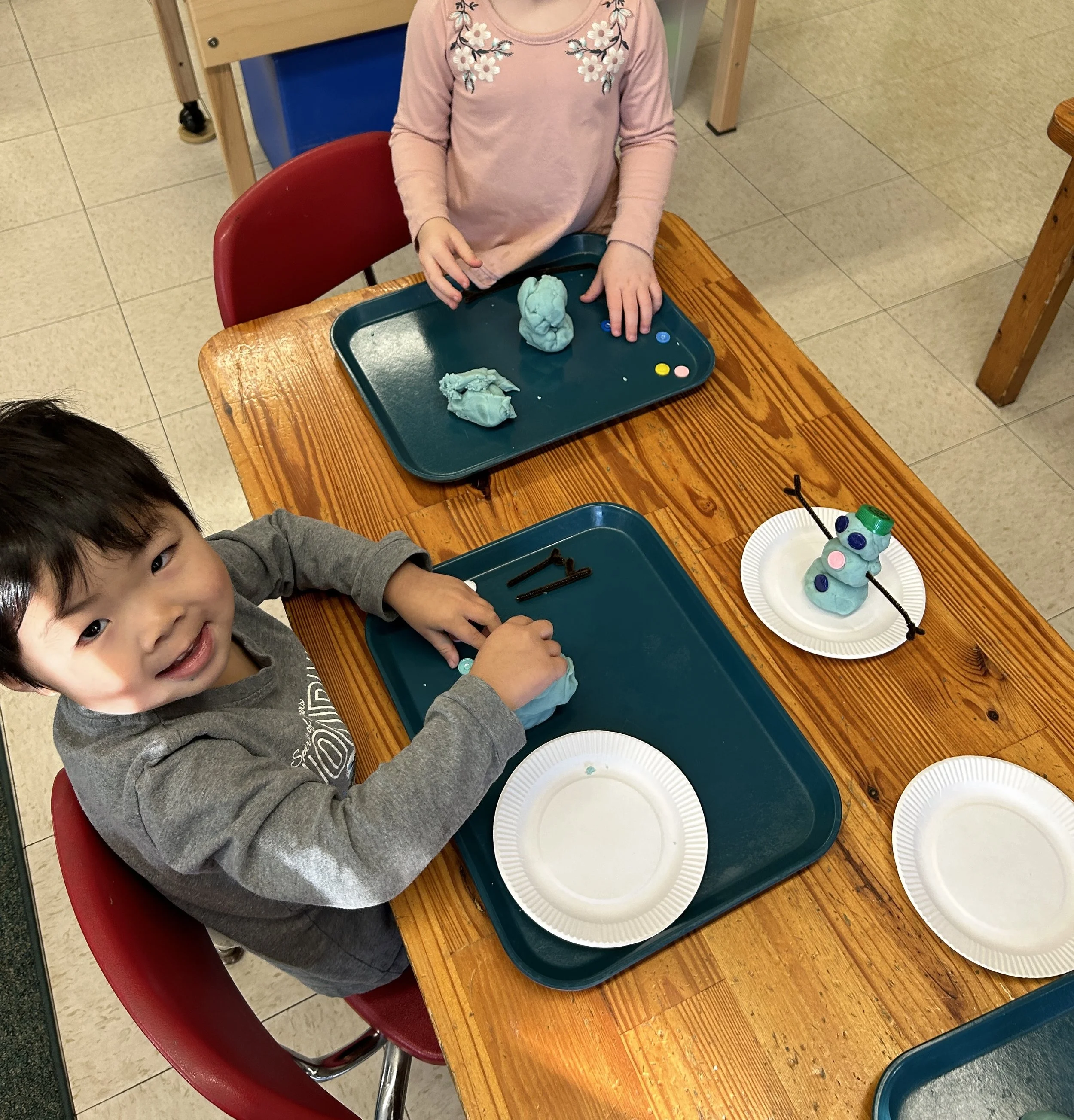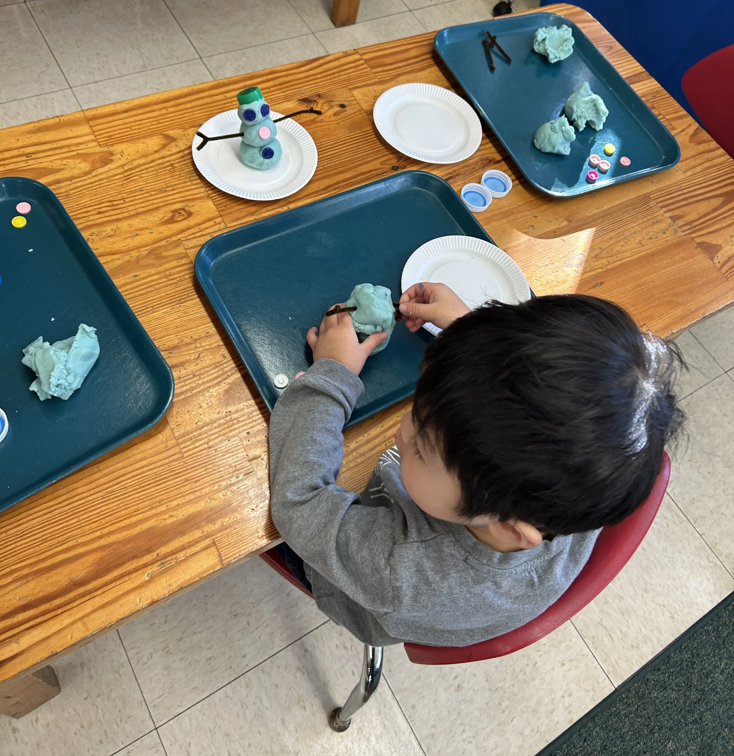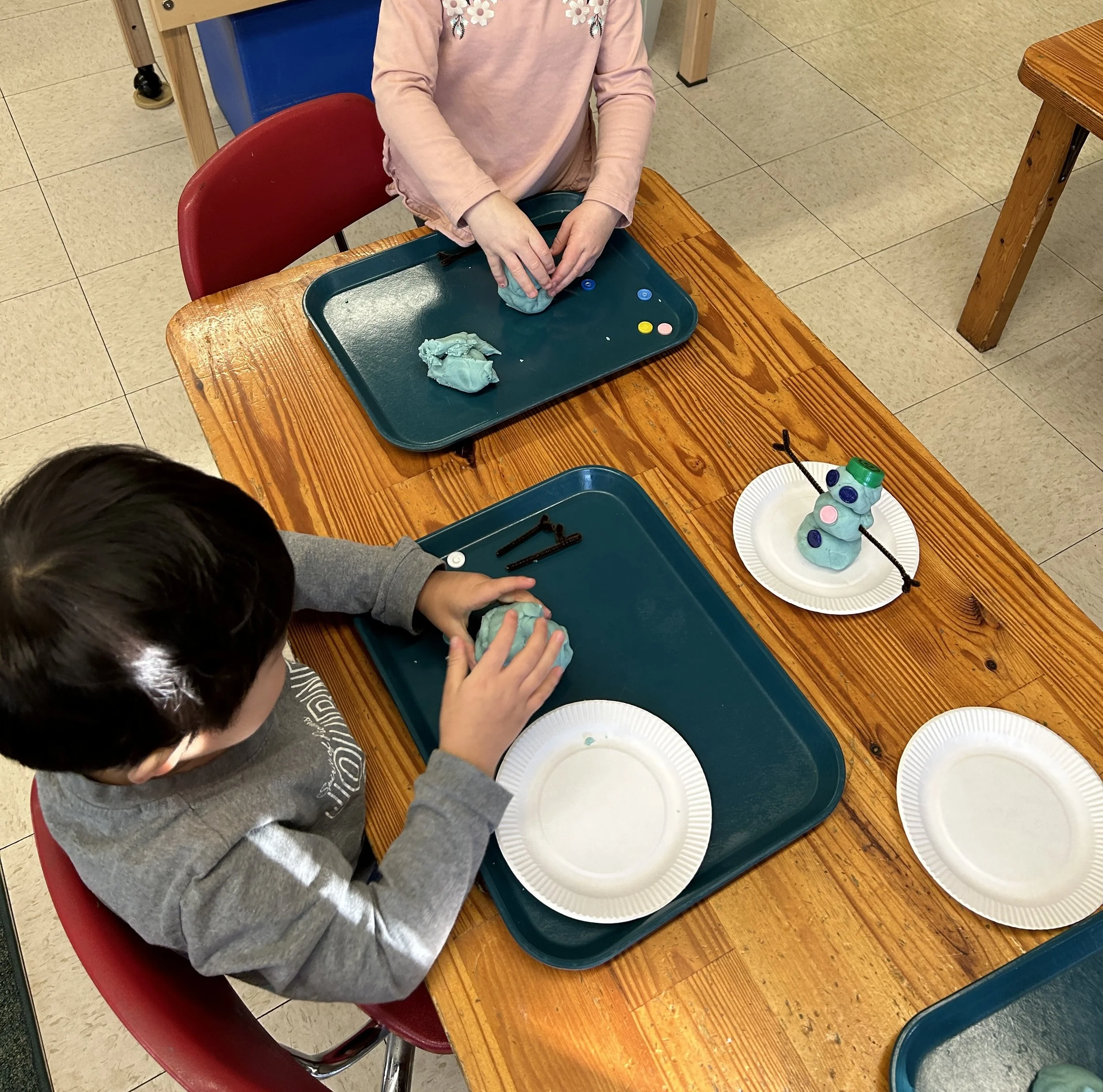 They also built snowmen using play dough and loose parts. Using loose parts inspires creativity and imagination.