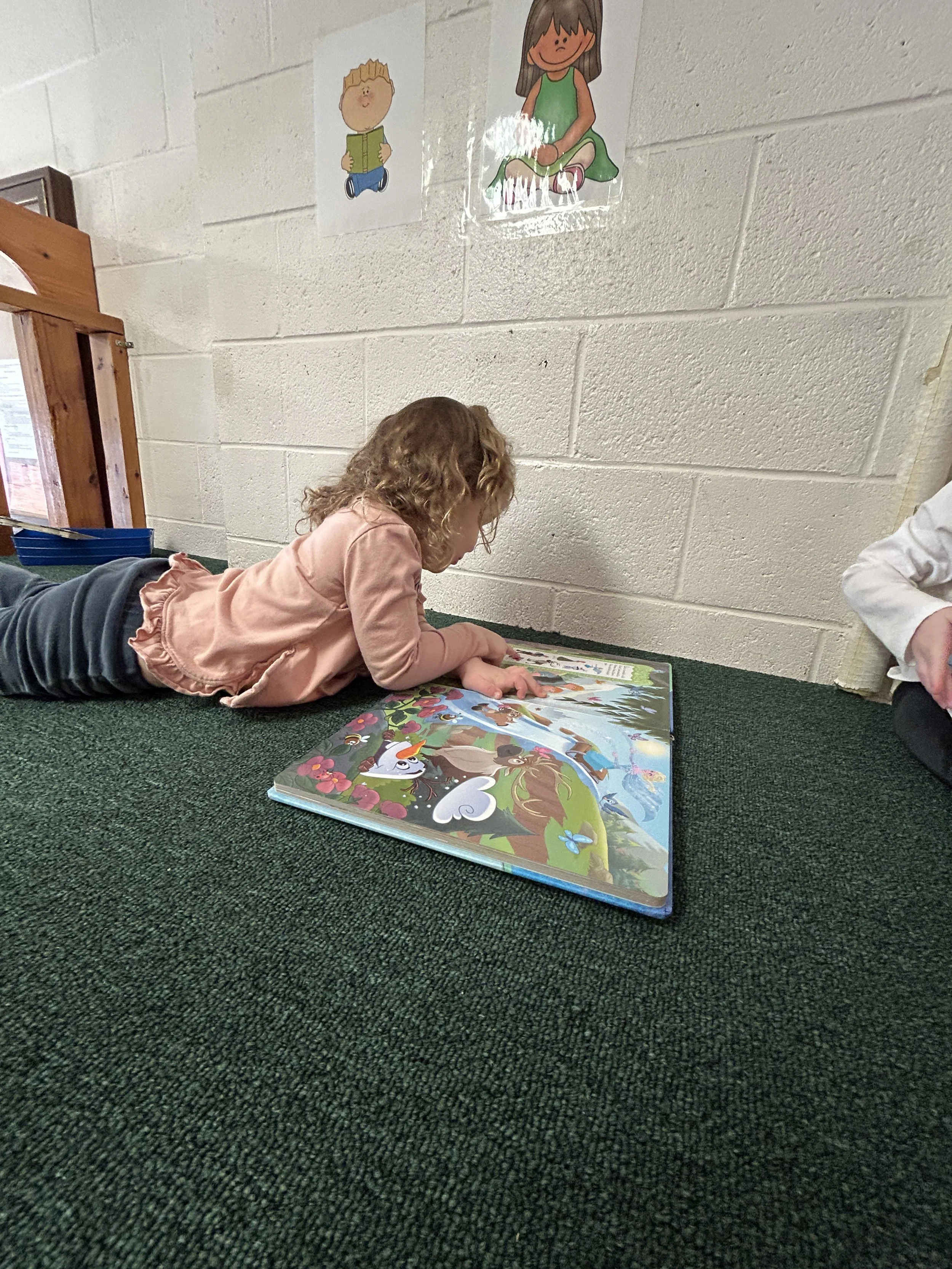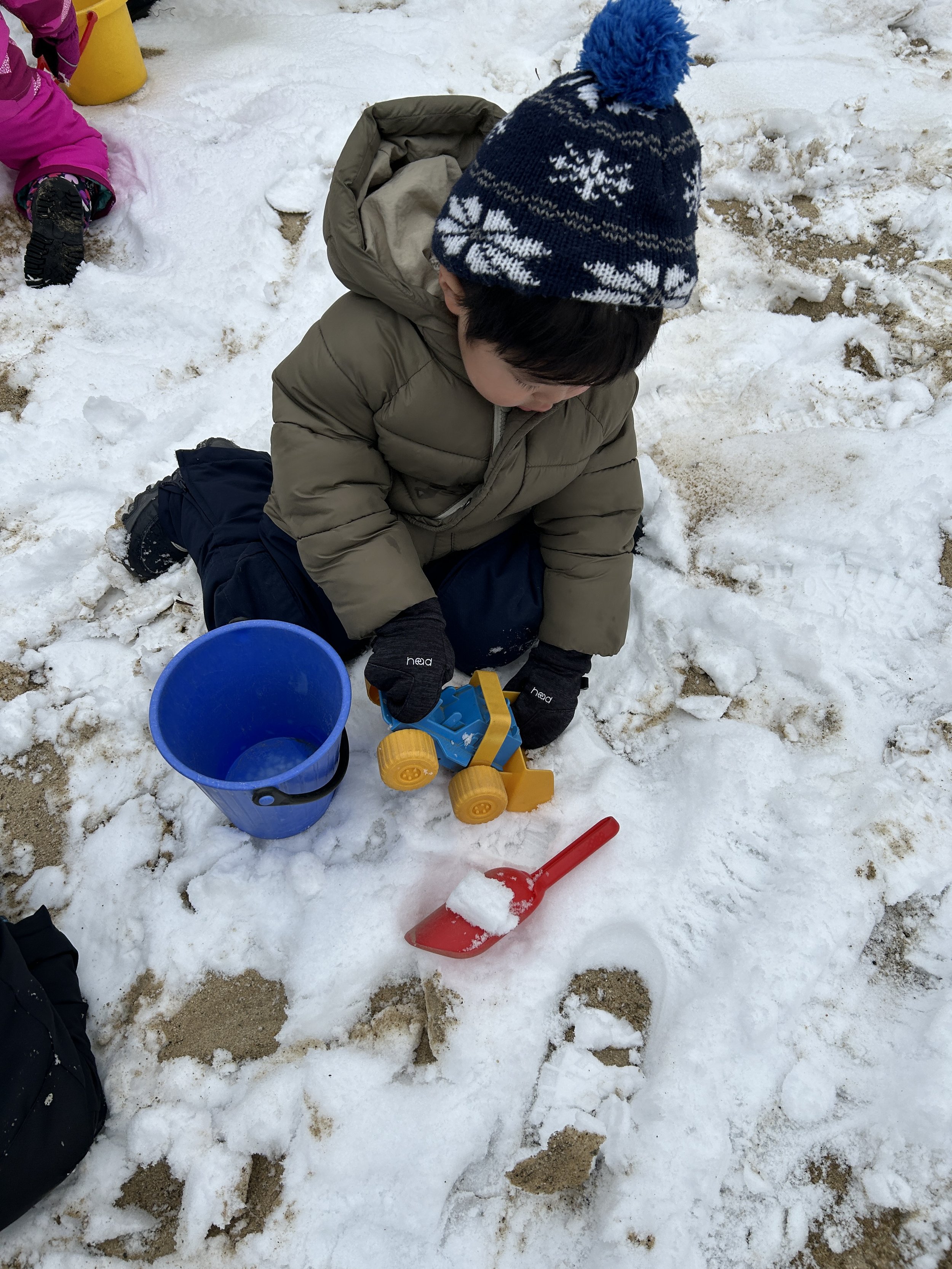 It was a great week in the Green classroom! We played in the snow outside on the playground. The children played in the snowy sand box with trucks and shovels. Some of the children were fascinated with the foot prints their boots made in the snow. We walked around and observed the foot prints and talked about how animals make prints in the snow as well.