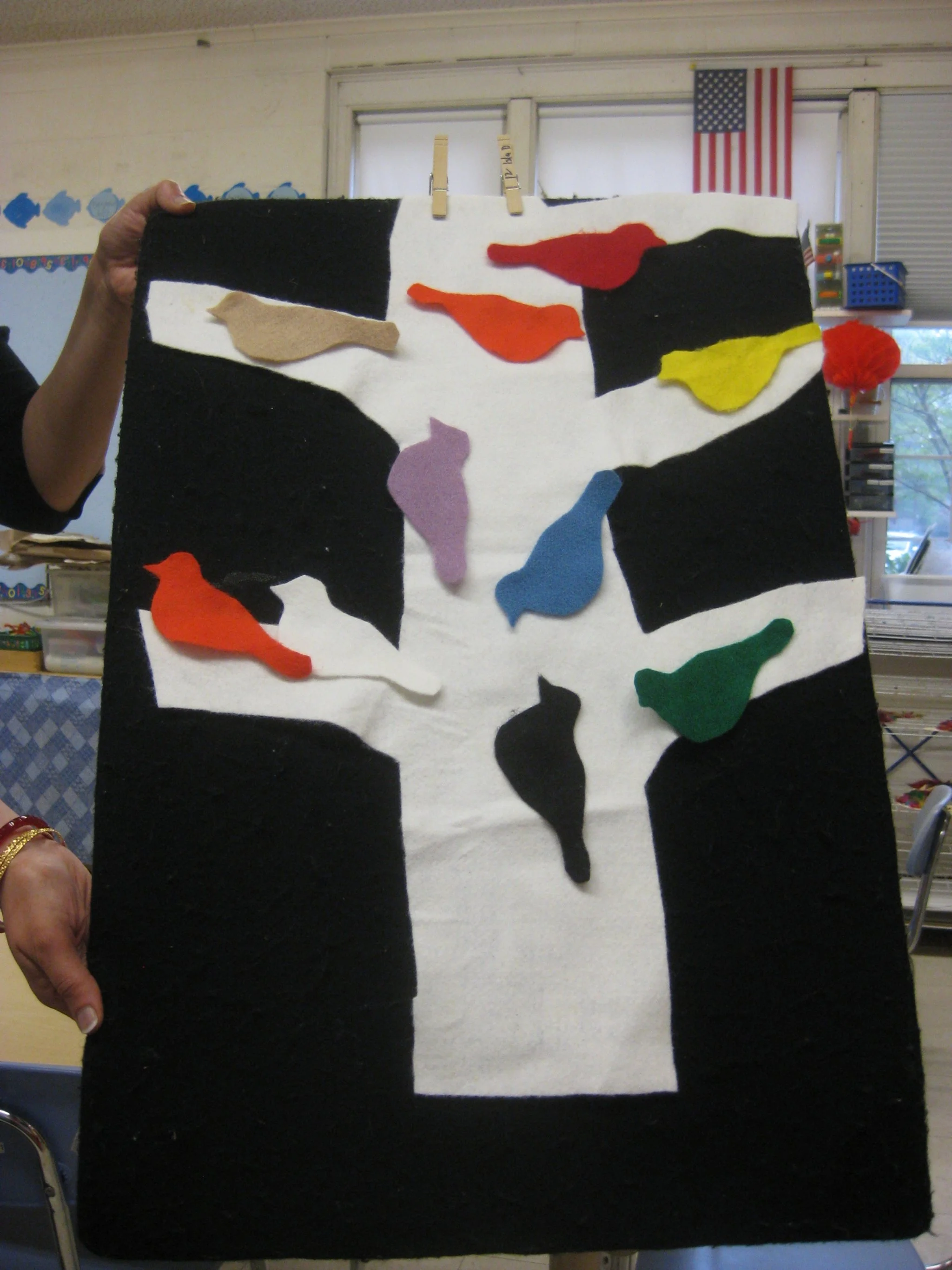Everyone had fun putting felt birds on this tree. First, we sang this song: