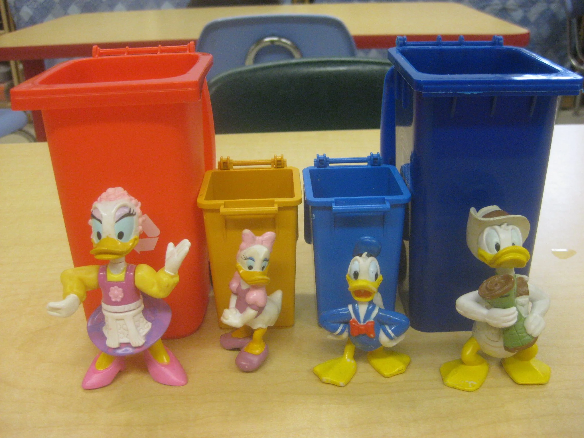 Last week I introduced Mama Duck who came to visit her daughter, Daisy Duck. Mrs. Rappaport (the teacher of the Green Class) heard that I needed another large trash can so Papa Duck could visit Donald Duck and on Monday she surprised me with a red one. I explained to the children that Mama Duck moved out of the Blue Trash can and Papa Duck moved in. They were very happy to have many ducks visit and I was very happy that the children were happy with my explanation - no questions asked.