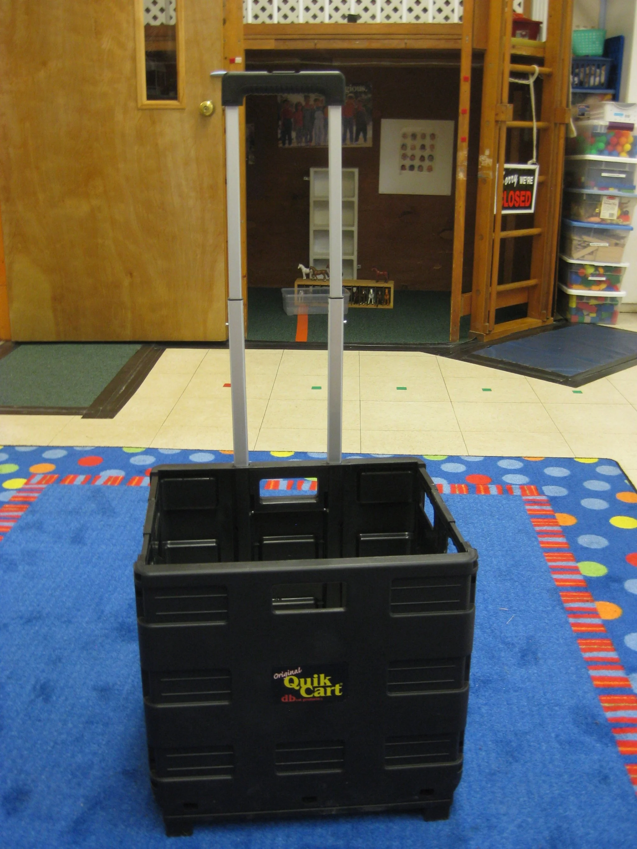This rolling crate has turned out to be one of my best purchases this spring. When I realized that we needed to have the children’s water bottles on the playground, one of the teachers was carrying a bag with 14 bottles. It was much to heavy. Now all the bottles go into this crate and it is easily wheeled in and out of the building. You never know when you make a purchase if it will be ‘life altering’. This crate is one of those things!