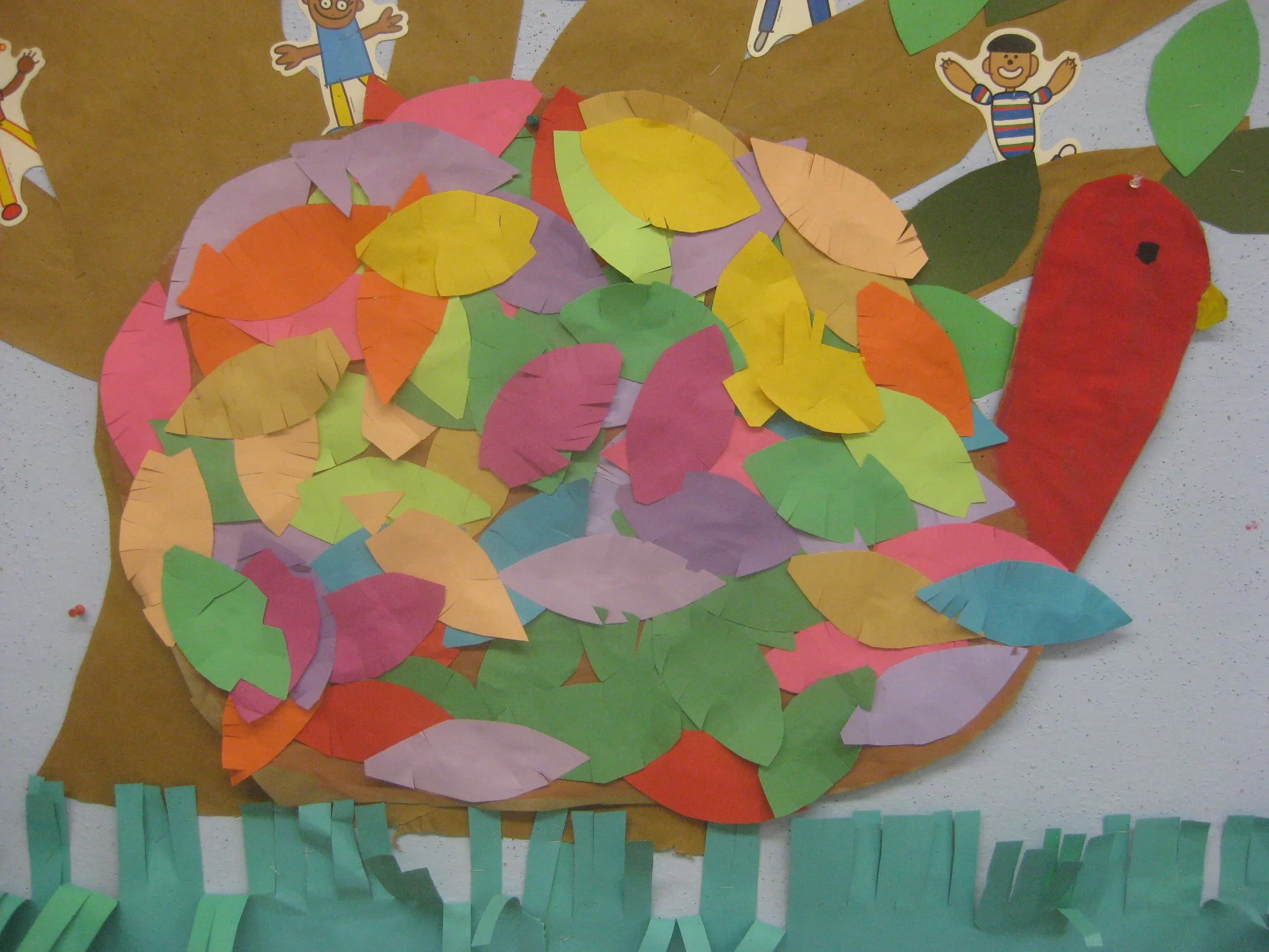 Your children have been practicing using scissors and this week I could see their progress. The children made feathers by ‘fringing’ both sides of a feather and then glued them to our large class turkey. It was very impressive to see them use the scissors independently and control the small cuts rather than cut all the way across the feather. On Thursday, the turkey visited Mrs. Rappaport’s class where her children added more feathers and on Friday, it visited Mrs. McGeachie and her children added even more.