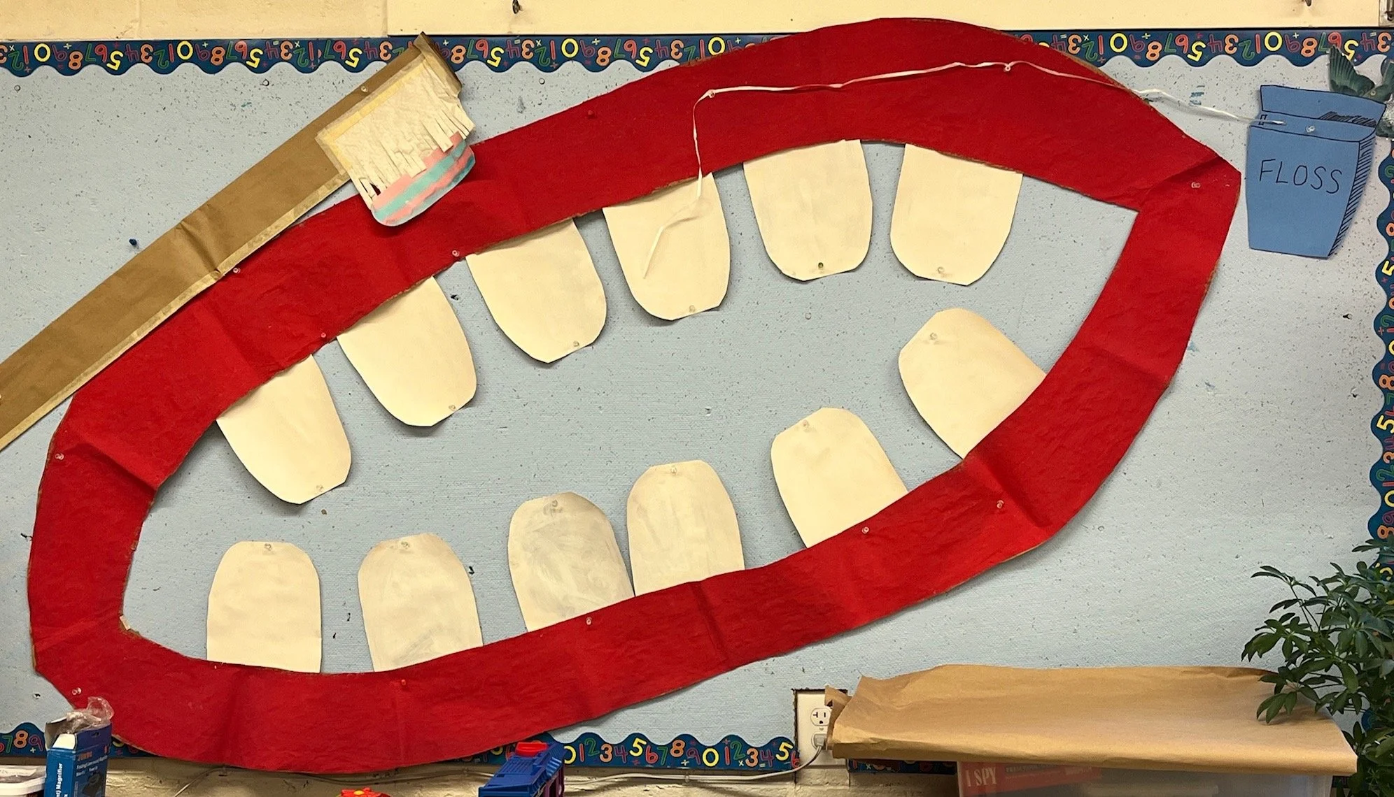 We spent the week talking about healthy teeth, including foods to keep them healthy, brushing morning and night, and visits to the dentist. We even had a pediatric dentist, Dr. Katie McCafferty (an MWS parent) talk to all the children about taking care of their teeth. Dr. McCafferty had a very large model of a mouth and equally large toothbrush. The children each had a turn to practice brushing the large teeth.