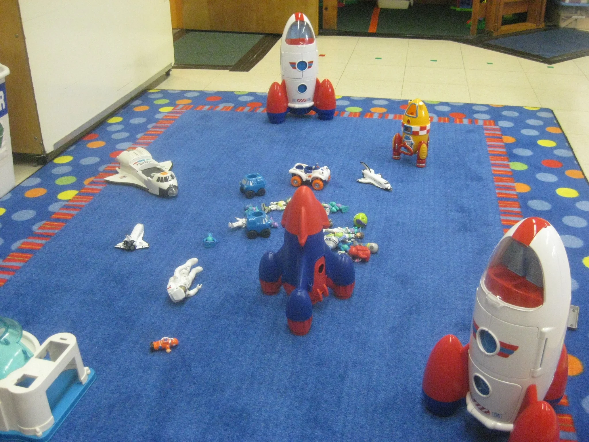 In our sensory table there were apples, leaves, and jars this week. Unscrewing, filling, and screwing the tops back on helps the small hand muscles grow. This is an easy activity to do at home if you save some jars.