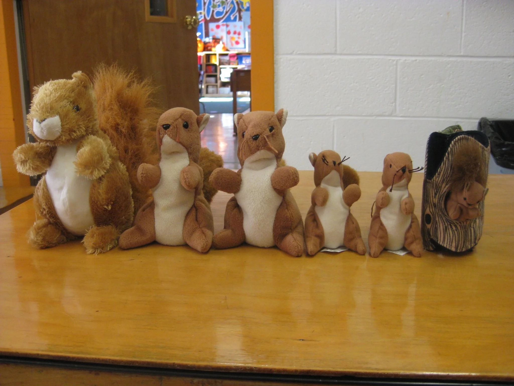 The children made squirrel art projects, some of which are on our bulletin board looking for acorns.