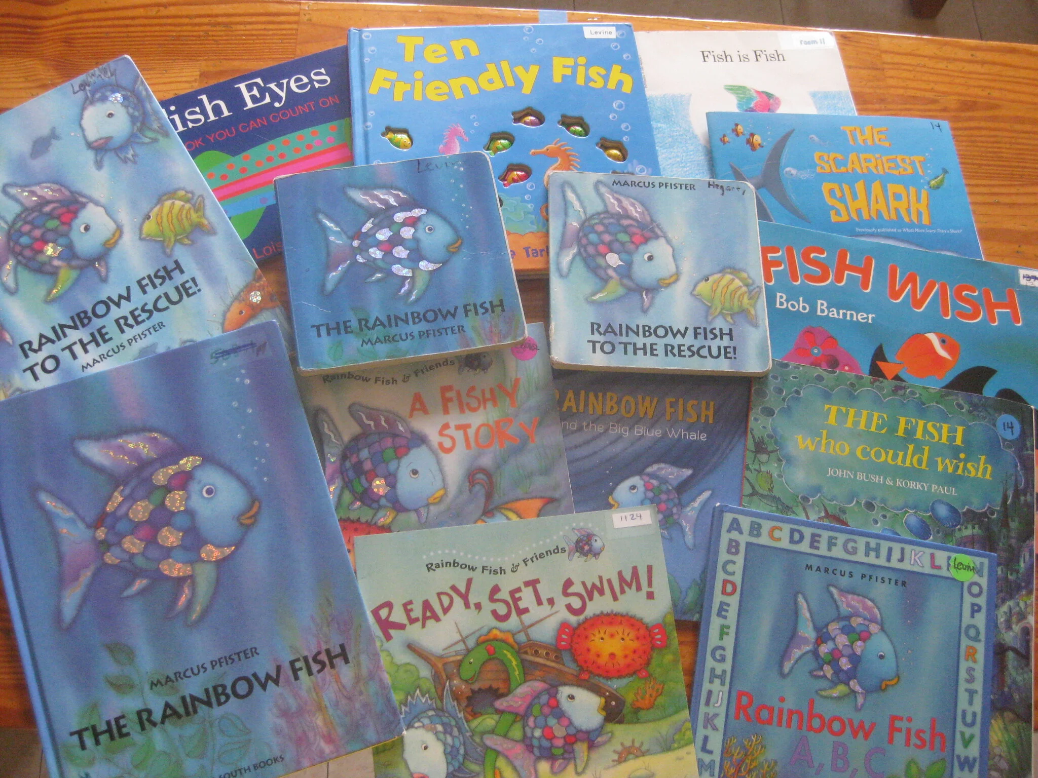 Rainbow Fish week is always a favorite. MWS has many stories in which Rainbow Fish and his friends appear. Our book bucket was filled with all kind of fish and ocean stories for the children to enjoy.